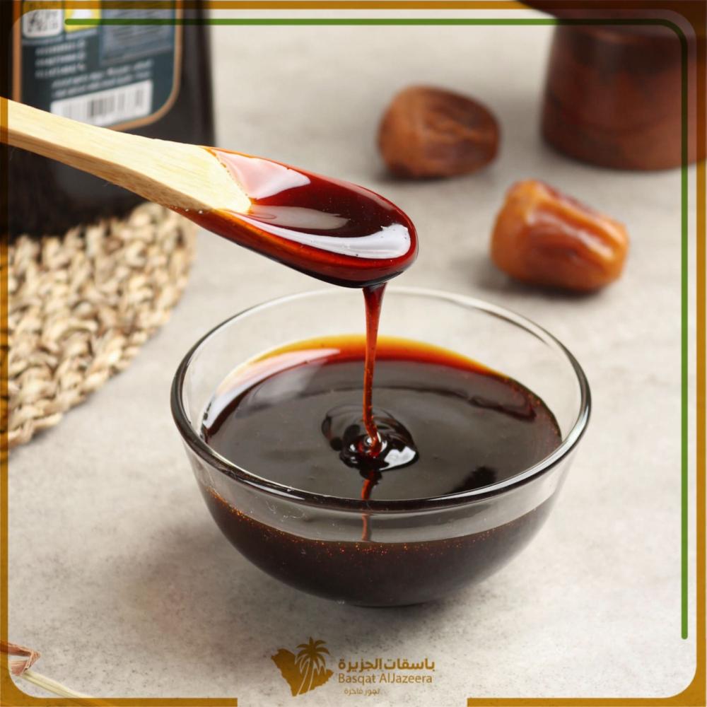 يتميز بلونه البني الغامق اللامع وقوامه السميك، مع طعم حلو مركز ومميز يحمل عبق التمر الأصيل.